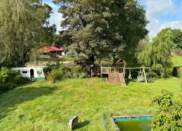 Grosszügiges Architektenhaus der 80er-Jahre in sehr schöner/ruhiger Lage: ursprünglich für die Eigennutzung - mit individuellem Grundriss - entworfen, war das Haus in den letzten Jahren vermietet. Viele Bauteile (Dach, Sanitär, Fliesen...) sind noch original - jedoch wurde bereits ein Teil der Fenster ausgetauscht (von Holz auf Kunsstoff), eine Solaranlage und eine neue Gasheizung (Bj. ca. 2021) installiert. Geräumige Diele mit offener Holz-Geschosstreppe und Garderobe, Abst.-raum, GWC, halboffener Wohn-/Essbereich mit offenem Kamin (ca 42 m²), Küche mit Platz für z.B. Eckbank und HWR als Schleuse zur extrabreiten Garage im EG; grosser Flur, Vollbad in "bahama-beige", Schlafzimmer und zwei Kinderzimmer im DG.... - insgesamt ca. 170 m². Ohne Frage ist hier das eine oder andere - zumindest optisch - nicht mehr ganz up to date, aber grundsätzlich ist das Haus bewohnbar - aktuell wird im Innenbereich komplett neu gestrichen/tapeziert - und bietet eine solide Substanz. Hinzu kommt ein Vollkeller für Abstellzwecke eine Fussbodenheizung (EG und DG) und teilweise Aussenjalousien. Alles auf ca. 1.037 m² Grundstück - weit abseits der Hauptstrasse und naturnah gelegen. Bei den Fotos handelt es sich teilweise um Archivbilder, Übergabe ggf. - nach Absprache/Verhandlung - auch frei. Ein Energieausweis befindet sich in Vorbereitung und liegt bei Besichtigung vor.