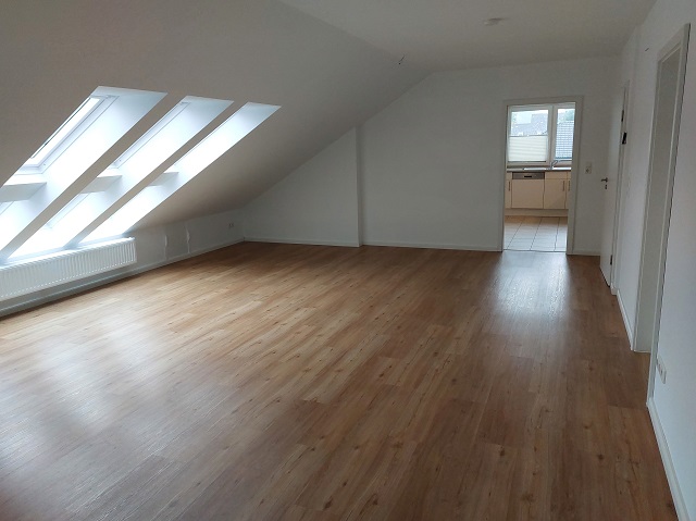 Diese interessant geschnittene DG-Wohnung befindet sich in einem 2-Familienhaus in Zeven-Nord. Ruhige Lage mit Blick ins "Grüne". Alle Dinge des täglichen Bedarfs sind in einigen Gehminuten erreichbar. Individuelle Raumaufteilung mit einem großen und hellen Wohnzimmer - mit schöner Fensterfront zur tollen Loggia - als Mittelpunkt der Wohnung, von dort aus gelangt man in alle übrigen Räume: Schlafzimmer - ebenfalls mit Zugang zur Loggia, großzügige Küche mit L-förmiger moderner EBK inkl. allen notwendigen E-Geräten und anliegendem Abstellraum, hell gefliestem Duschbad mit Fenster und Anschluss für WM; insgesamt ca. 65 m². Ausstattung: Design-Bodenbelag in den Wohnräumen, helle Wände, weiße Türen, z.Teil Plisses vor den Fenstern. Einen Pkw-Stellplatz findet man direkt vor dem Haus an der öffentlichen Straße. Die Kosten für Strom rechnet der Mieter direkt mit dem Versorger ab. Die Wohnung kann kurzfristig an eine Einzelperson vermietet werden !