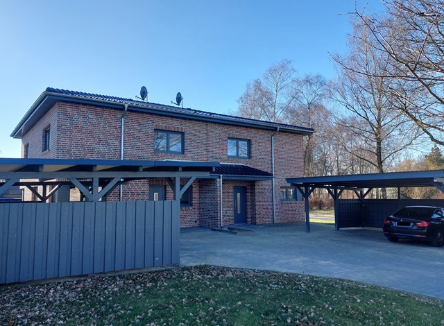 Wir können Ihnen zwei hochwertig ausgestattete DHHälften in Selsingen anbieten. Tolle Ortsrandlage : schnell in der Natur...sowie in ein paar Minuten im Ortskern von Selsingen mit allen Dingen des täglichen Bedarfs. Der gut durchdachte Grundriss bietet im EG ein großes Wohnzimmer mit offener Küche, einen HWRaum, ein Gäste-WC und eine Diele mit Garderobenecke. Im OG befinden sich drei relativ gleich große Zimmer, ein Bad mit Fenster und barrierefreier Dusche, ein kl. Abstellraum und ein Flur mit Einschubtreppe zum Spitzboden ; insgesamt ca. 130 m². Zu den Häusern gehören jeweils ein Doppel-Carport, eine zum Süden ausgerichtete Terrasse, ein Außenabstellraum und Garten. Folgende tolle Ausstattung erwartet Sie : hochwertige EBK mit allen E-Geräten und viel Stauraum, Fußbodenheizung im ganzen Haus, Designböden, Echtholztreppe, elektr. Außenjalousien, Waschtisch mit Spiegelschrank im Bad, integrierte Deckenstrahler in fast allen Räumen, Sat-Anlage, Energiesparsame Wärmepumpe und Erdwärme-Tiefenbohrung - kombiniert mit einer hocheffizienten Lüftungsanlage. Die Verbrauchskosten rechnen die Mieter direkt mit den Versorgern ab. Diese tollen DHHälften können nach Absprache kurzfristig gemietet werden.
