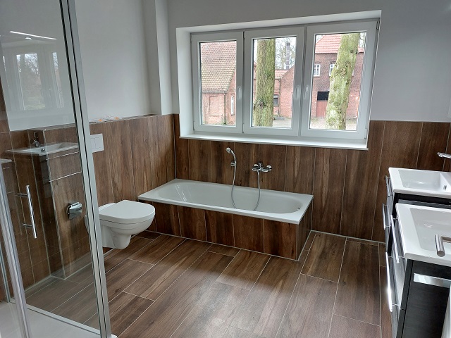 Diese exclusiven DHHälften werden derzeit in Zeven / OT Oldendorf mittig des gewachsenen Dorfkerns erstellt und sind voraussichtlich Mitte Februar 2022 bezugsfertig. Der gut durchdachte Grundriss bietet im EG ein großes Wohnzimmer, eine halboffene Küche mit EBK, einen HWRaum mit Nebeneingangstür, ein Gäste-WC und eine eine Diele mit Abstellraum unter der Treppe. Im DG befinden sich drei nahezu gleich große Zimmer, ein Bad mit Dusche und Wanne und ein Flur mit Einschubtreppe zum Spitzboden ; insgesamt ca. 123 m² Wohnfläche. Zu den Häusern gehört jeweils eine Terrasse, ein Carport / Doppelcarport mit Außenabstellraum und ein großer Garten. Folgende Ausstattung erwartet Sie : hochwertige EBK, Fußbodenerwärmung im ganzen Haus, Designfliesen, Eiche-Echtholzdielen in Wohn- und Schlafräumen, Netzwerkkabel in allen Zimmern, Sat-Anlage und eine Terrasse mit Echtglasüberdachung. Energiesparsamer KfW 40+ Standard mit Wärmepumpe und Erdwärme-Tiefenbohrung - kombiniert mit einer hocheffizienten Lüftungsanlage. Der Ortsteil Oldendorf ist nur wenige PKW-Minuten von Zeven-Stadt entfernt und auch mit dem Rad gut zu erreichen. Er liegt zudem direkt am Naherholungsgebiet "Grosses Holz" und ist teilweise noch durch landwirtschaftliche Betriebe geprägt. Die Verbrauchskosten rechnen die Mieter direkt mit den Versorgern ab.